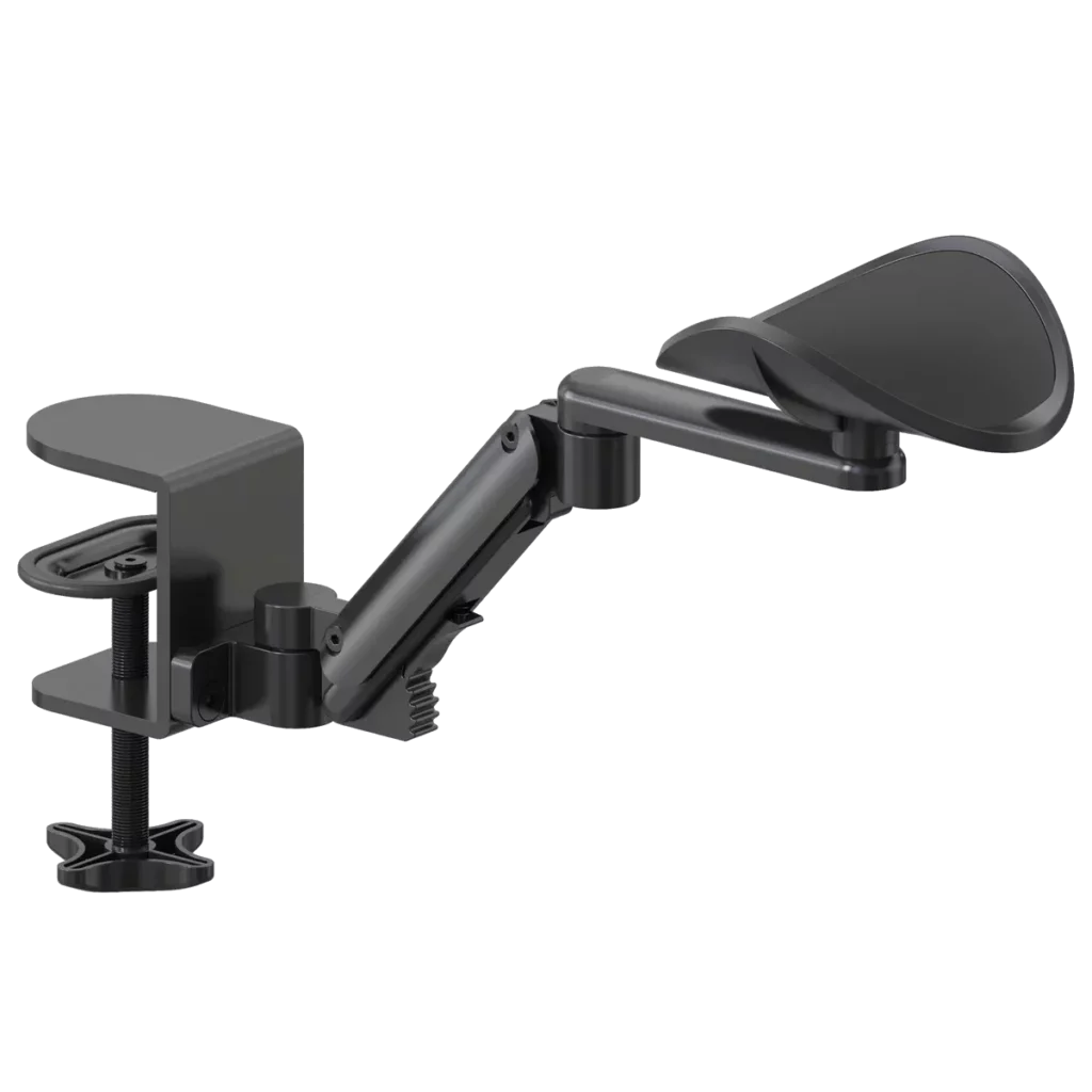 The Leva arm support from Armon Products ensures that I can perform my work in a good and comfortable posture. My arms remain relaxed, so I experience much less tension in my shoulders and back. Whether I sit at my desk for a short or long time, the Leva provides constant support. In addition, it is easy to use and easy to adjust to meet my needs.